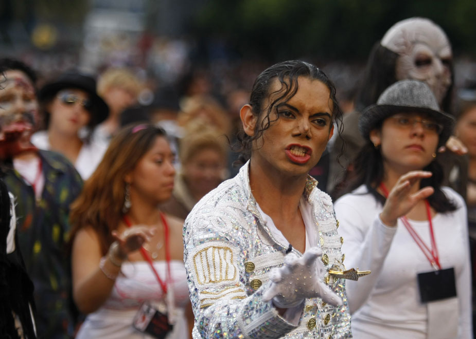 8月29日,逾萬名墨西哥人在墨西哥城廣場同時跳舞,用以紀念邁克爾·杰克遜第51個“生日”,同時也試圖打破同時跳舞人數最的吉尼斯世界紀錄。圖片來源:中國新聞網