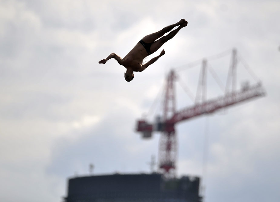當?shù)貢r間8月29日,世界懸崖跳水系列賽在德國漢堡舉行,吸引了眾多高手前來參賽。