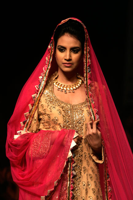 9月13日,主題名為“地球時裝”的時裝周在印度加爾各答開幕,時裝周上模特們展示了設計師馬尼什·馬爾霍特拉的作品。來源:中國新聞網