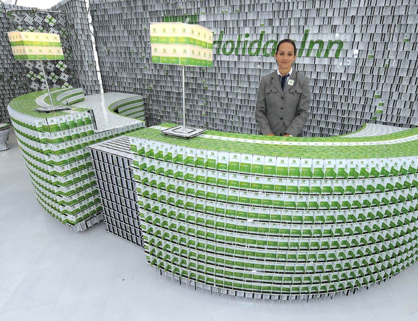 9月17日,在美國紐約,一位名叫布賴恩的設(shè)計(jì)師展示他利用房門卡設(shè)計(jì)的客房。這個占地約37平方米的酒店接待大廳、臥室和衛(wèi)生間是利用20多萬張房門卡搭建而成的。