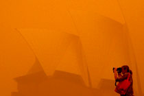 澳大利亞悉尼23日出現(xiàn)罕見(jiàn)的沙塵暴,加上風(fēng)速每小時(shí)上百公里的強(qiáng)風(fēng)吹襲,全城籠罩在一片橘紅色的塵霧中,由于能見(jiàn)度相當(dāng)?shù)停w機(jī)和渡輪暫時(shí)停飛或停駛。