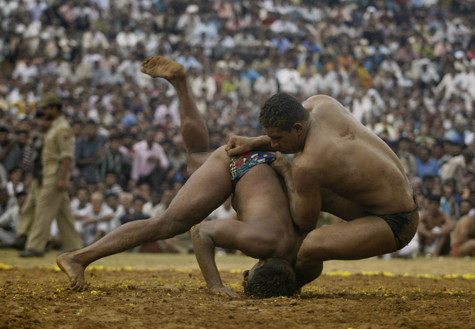9月22日,印度格德拉,第5屆印度-巴基斯坦摔跤友誼賽在當地舉行。