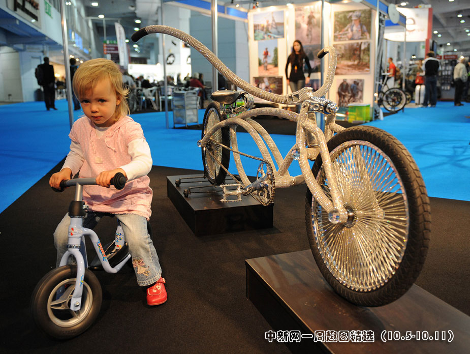 10月8日,2009自行車展在倫敦市中心開幕,超過11萬顆施華洛世奇水晶覆蓋的自行車成為有史以來最昂貴的自行車,該車由英國人本·威爾遜設計制造。來源:中國新聞網
