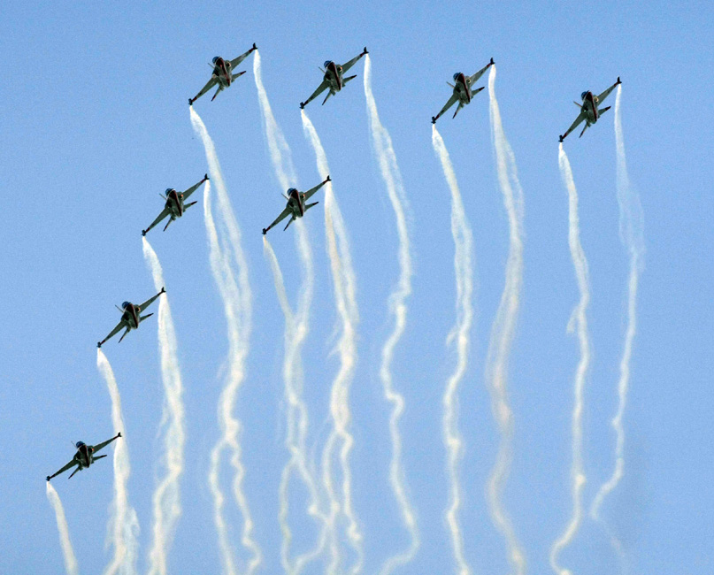 10月20日,韓國黑鷹特技飛行表演隊在2009首爾國際航空航天與國防展上進行精彩的特技飛行表演。
