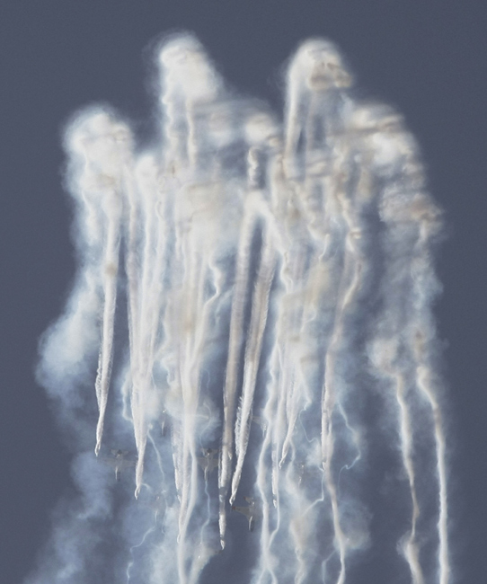 10月20日,韓國黑鷹特技飛行表演隊(duì)在2009首爾國際航空航天與國防展上進(jìn)行精彩的特技飛行表演。