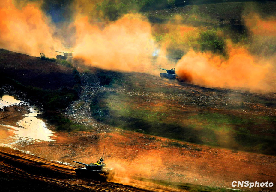 解放軍“前鋒-二00九A”演習,二十二日在濟南軍區某合同戰術訓練基地進行陸空聯合火力打擊實兵實彈演練。中新社發 宋吉河 攝