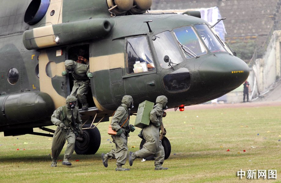 首先趕到現(xiàn)場(chǎng)的是一架米—171直升機(jī),4名防化偵察員全身防護(hù)狀態(tài)下依次著陸。著陸后,其中2人實(shí)施先期偵察,簡(jiǎn)單了解情況后對(duì)商場(chǎng)外空氣、進(jìn)出道路及商場(chǎng)外部設(shè)施進(jìn)行偵察,初步查明遭襲情況,并采集收取樣品;另外2人指導(dǎo)公眾防護(hù)并協(xié)助組織撤離危害區(qū)。 郝飛 攝