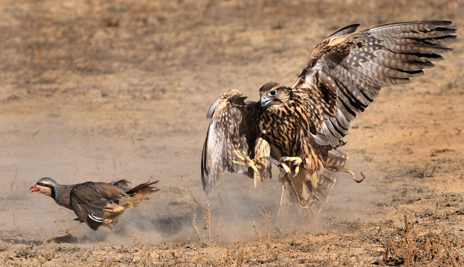 10月30日,在吉爾吉斯斯坦Bokonbayevo傳統的狩獵節上,一只捕獵鳥在追獵物。圖片來源:中國新聞網