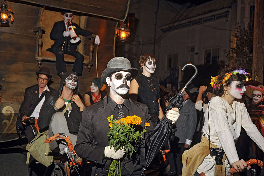 11月2日,美國舊金山居民扮成鬼怪模樣慶祝“亡靈節(jié)”。“亡靈節(jié)”是拉美地區(qū)的傳統(tǒng)節(jié)日,類似于中國的清明節(jié)。來源:中國新聞網(wǎng)