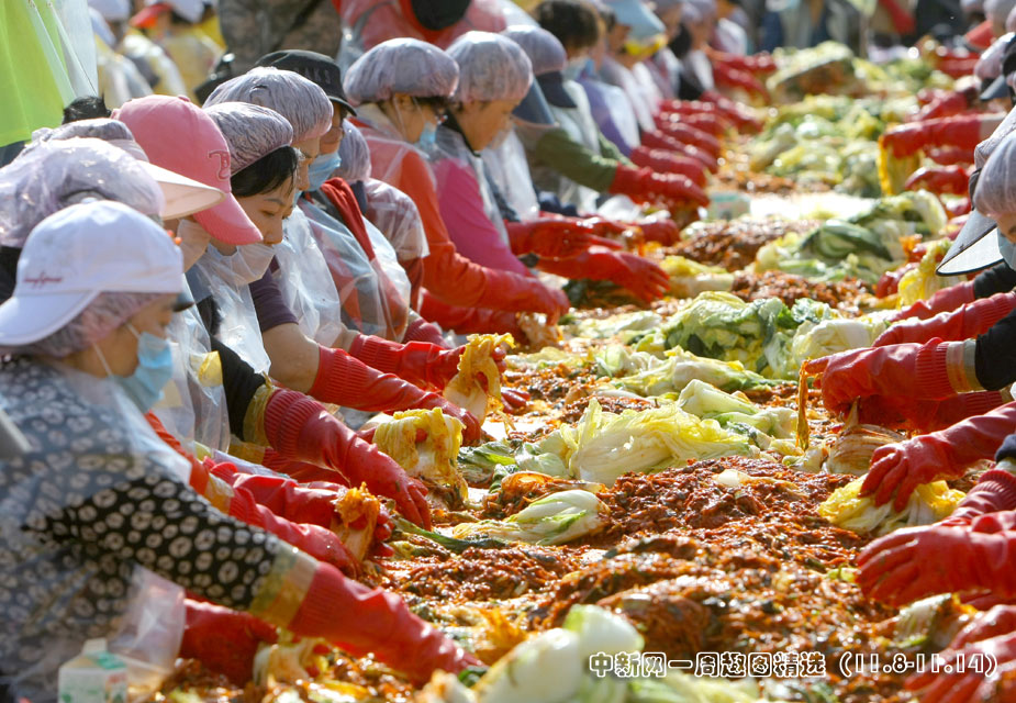 11月9日,約2700名韓國(guó)志愿者在首爾一所學(xué)校的操場(chǎng)上制作泡菜。>>點(diǎn)擊觀看詳細(xì)內(nèi)容