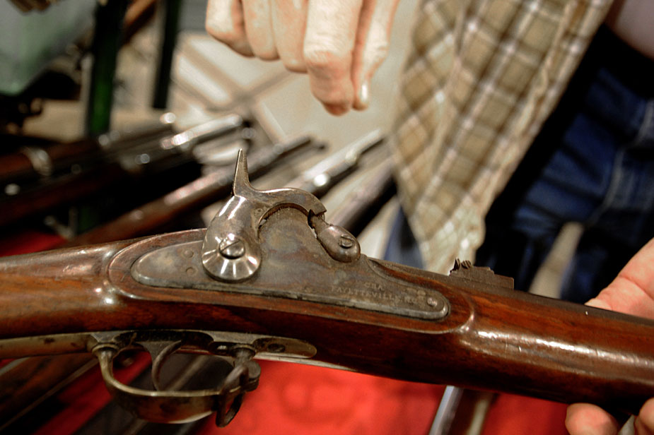 11月21日,美國弗吉尼亞州尚蒂伊舉辦了為期三天的國際槍械展覽,眾多廠商和收藏家抵達參觀。圖片來源:中國新聞網