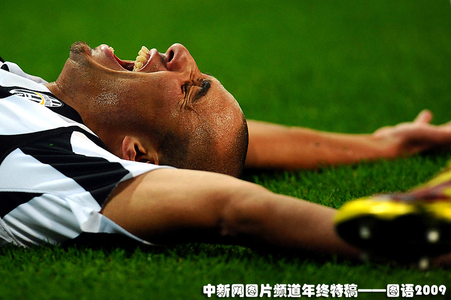 歐洲冠軍杯小組賽A組的一場比賽中,意大利尤文圖斯隊的特雷澤蓋在攻破拜仁慕尼黑隊的球門后倒地慶祝。但最終拜仁隊以4比1獲勝。