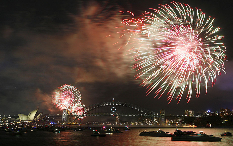 圖為12月31日,絢麗的煙花與悉尼灣大橋和悉尼歌劇院交相輝映。澳大利亞悉尼市當(dāng)晚舉行焰火表演,迎接即將到來(lái)的新年。