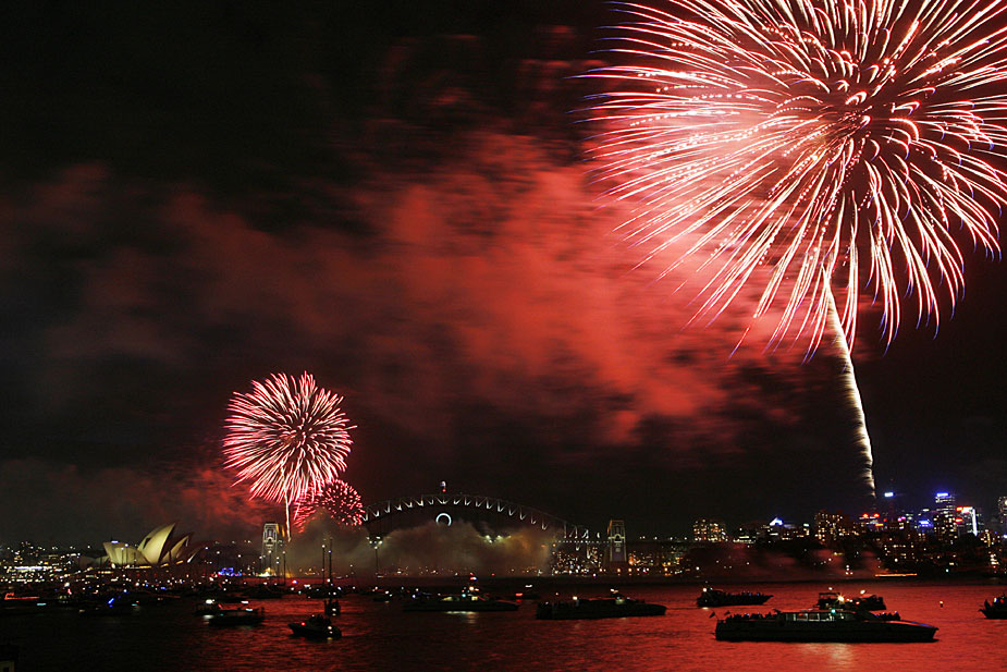 圖為12月31日,絢麗的煙花與悉尼灣大橋和悉尼歌劇院交相輝映。澳大利亞悉尼市當晚舉行焰火表演,迎接即將到來的新年。