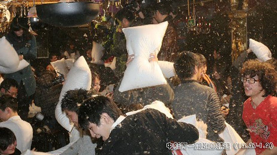 12月27日下午,武漢漢口江灘夜色酒吧,80特區舉行五百人枕頭大戰狂歡派對。80后青年在主持人帶領下展開了3個小時的互動游戲。在主打活動“枕頭大戰”中,青年人歡笑、奔跑、跳躍,用裝滿羽毛的白色大枕頭展開對決。據了解,枕頭大戰是當今流行的一種緩解工作、生活壓力的減壓聚會方式。圖片來源:中國新聞網>>點擊觀看詳細內容