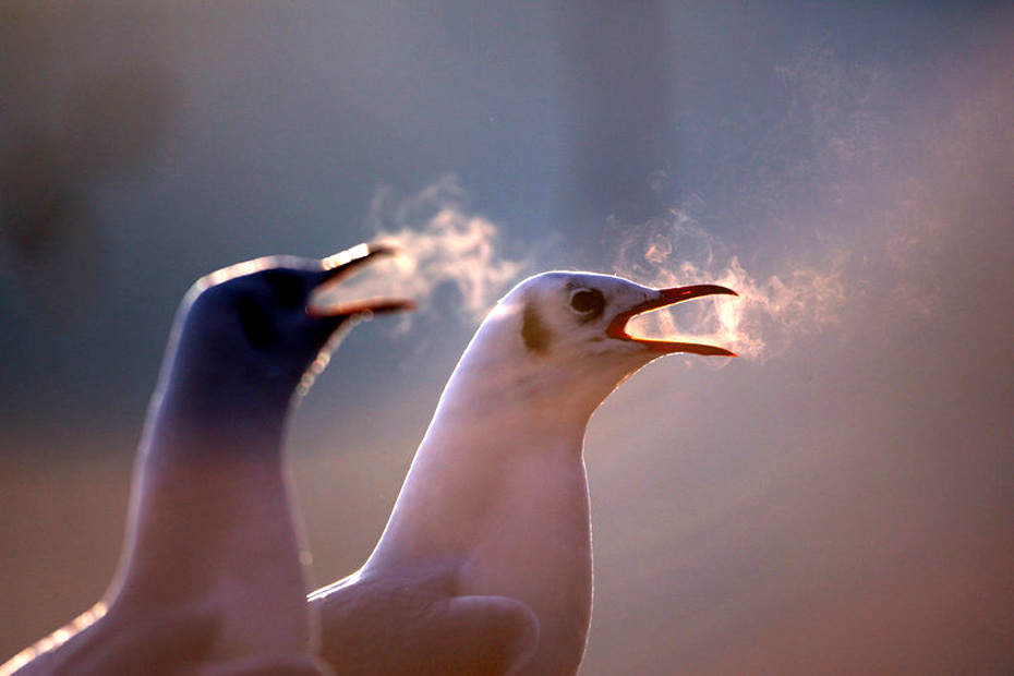 1月4日,倫敦,天氣嚴寒,兩只海鷗在呼氣。