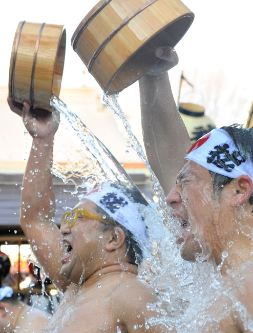 1月9日,日本東京,眾多日本民眾參加傳統的凈化儀式,他們用冷水澆身,祈禱身體和靈魂得到凈化。圖片來源:中國新網網