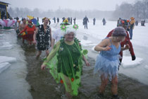 1月10日(周日),日本東京,一群健身愛好者在冷水中浸泡,“比拼”毅力。圖片來源:中國新聞網