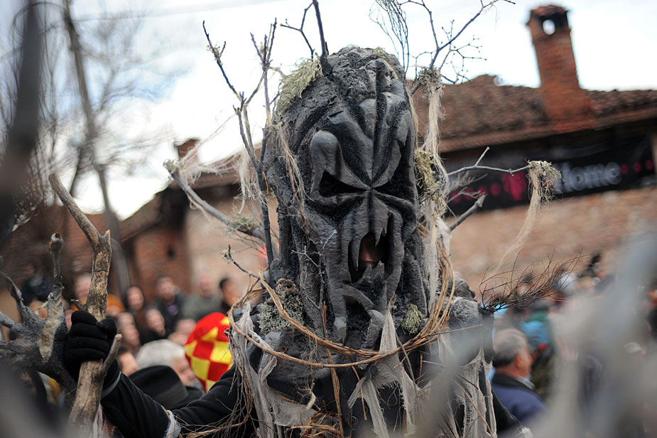 1月13日,馬其頓一個名叫Vevcani的小鎮舉行了一年一度的東正教圣瓦西里日狂歡節。該狂歡每次都是以恐怖內容亮相街頭。圖片來源:中國新聞網