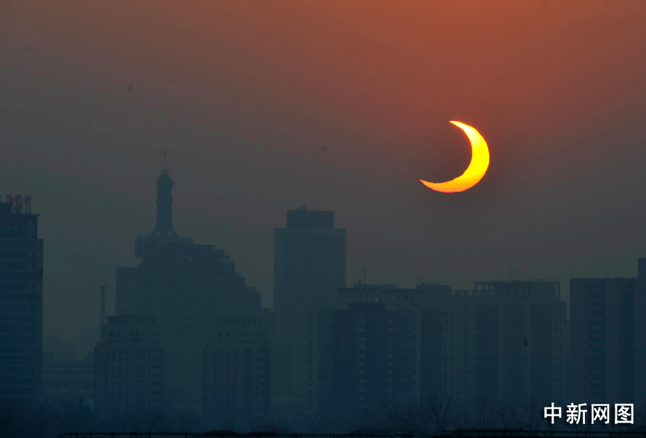 1月15日下午,“千年一遇”的日環食天文奇觀如約光臨中國。由于北京不在此次環食帶上,因此在北京只能觀測到日偏食。中新網記者 金碩 攝