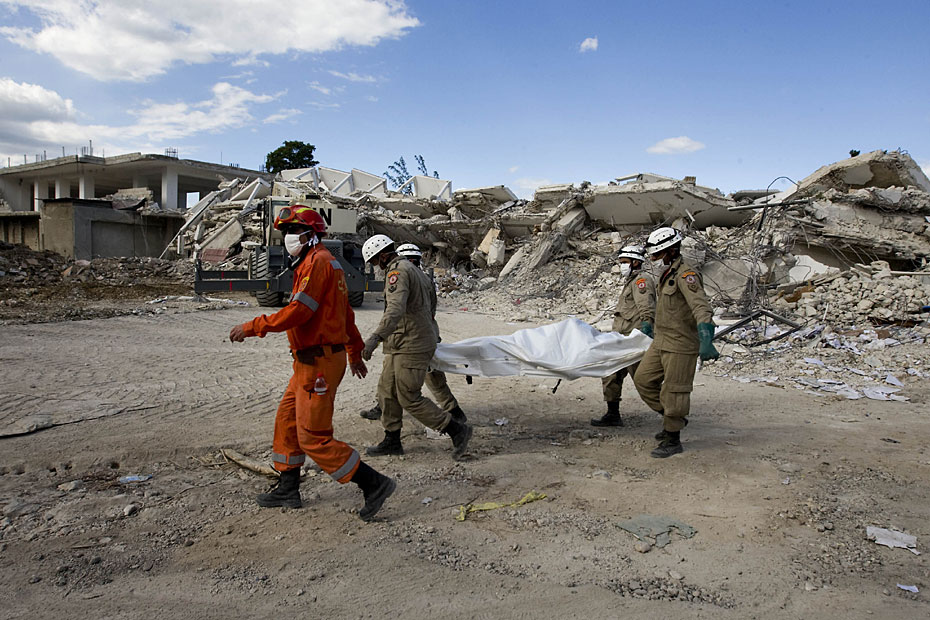 1月16日,海地首都太子港,中國國際救援隊在聯海團總部對遇難者進行搜尋工作。此前八名中方失蹤人員的遺體已全被找到。圖片來源:中國新聞網