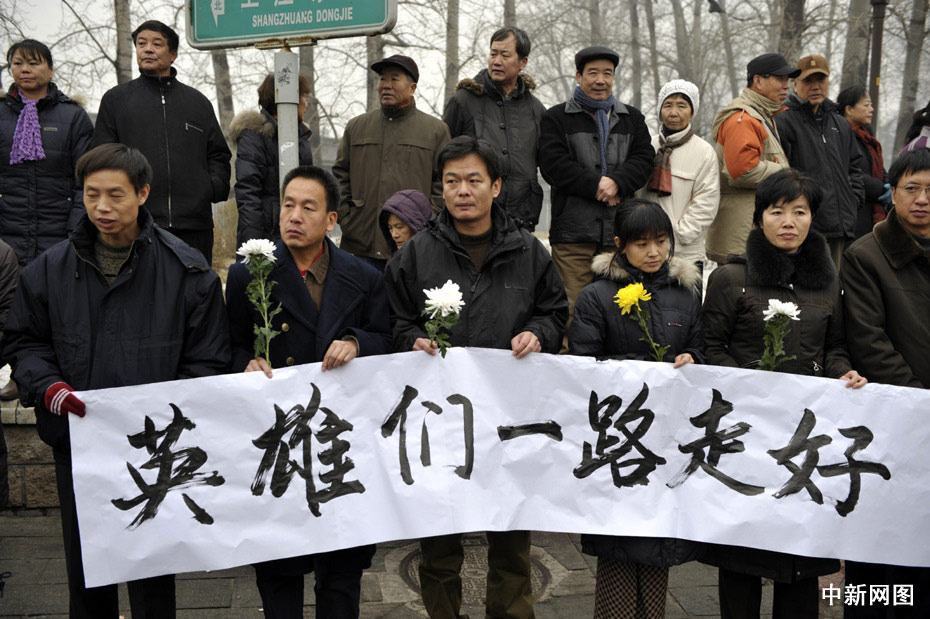 1月19日,北京民眾自發守候在通往北京八寶山殯儀館的路口迎接英烈的靈柩。當日,八位海地地震遇難中國維和警察的靈柩搭乘專機將抵達北京。中新網記者 金碩 攝