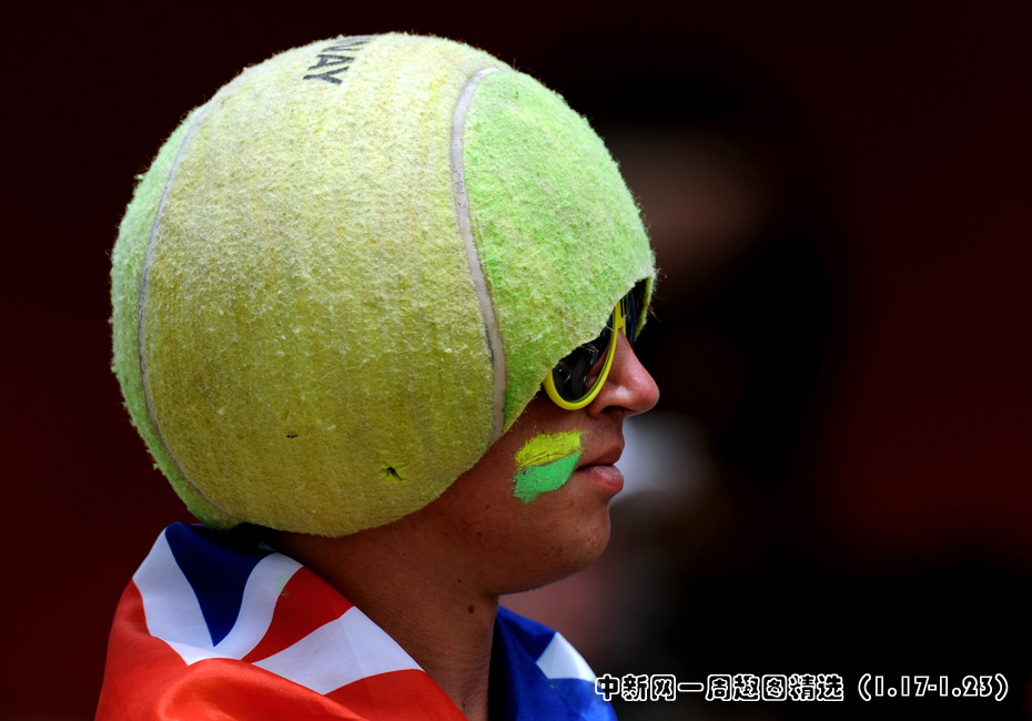 1月21日,澳大利亞墨爾本網(wǎng)球公開賽的第四天,一個(gè)頭戴巨型網(wǎng)球帽的觀眾在看臺上顯得格外特別。圖片來源:中國新聞網(wǎng)