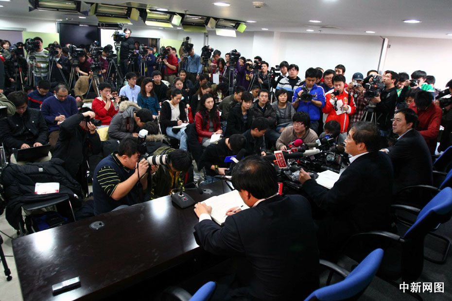圖為中國足協新任掌門人韋迪召開首個新聞發布會現場。中新社記者 富田 攝