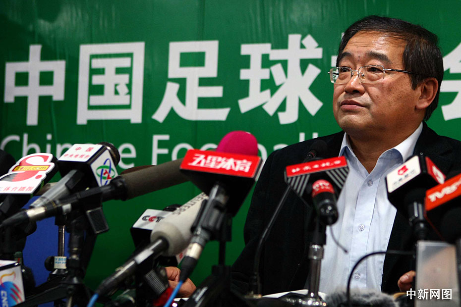 圖為中國足協新任掌門人韋迪召開首個新聞發布會現場。中新社記者 富田 攝