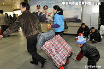 春節臨近,出門在外的人拎著大包小包地回家過年。這行囊或重或輕,可能是帶給父母的孝敬,也可能是帶給愛人的心動,但每個行囊中一定都會裝著人們一年來收獲的喜悅之情。中新社發 吳元峰 攝