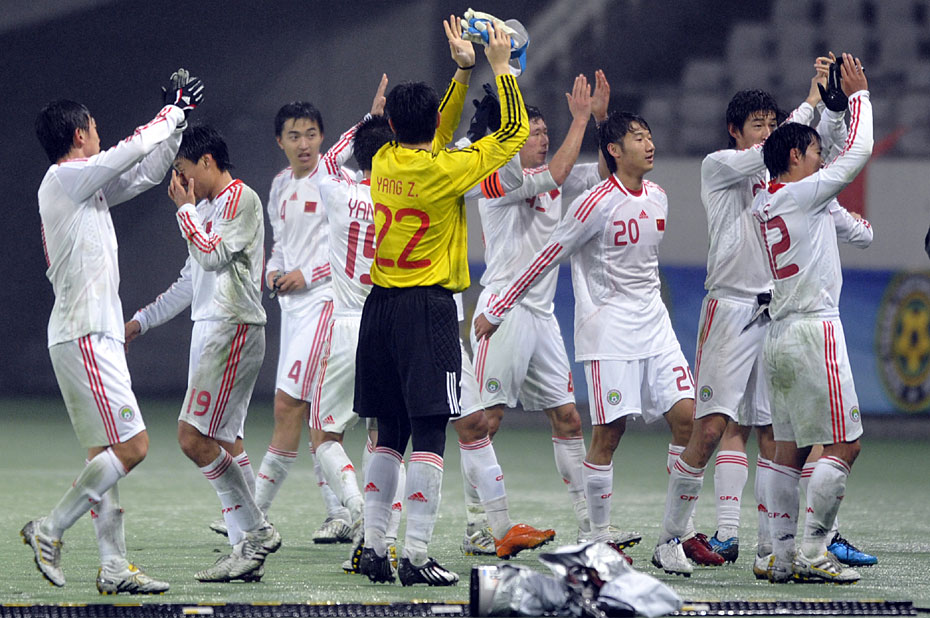 2月10日晚18:15,中國男足國家隊迎來了東亞四強賽第二場與韓國隊的比賽,憑借著于海、郜林和鄧卓翔的進球,國足3:0完勝韓國,讓“恐韓癥”成為歷史。圖片來源:中國新聞網
