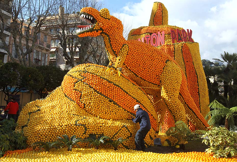 2010年2月10日,法國(guó)芒頓一年一度的檸檬節(jié)拉開帷幕。本次檸檬節(jié)將于3月3日結(jié)束。圖片來源:中國(guó)新聞網(wǎng)