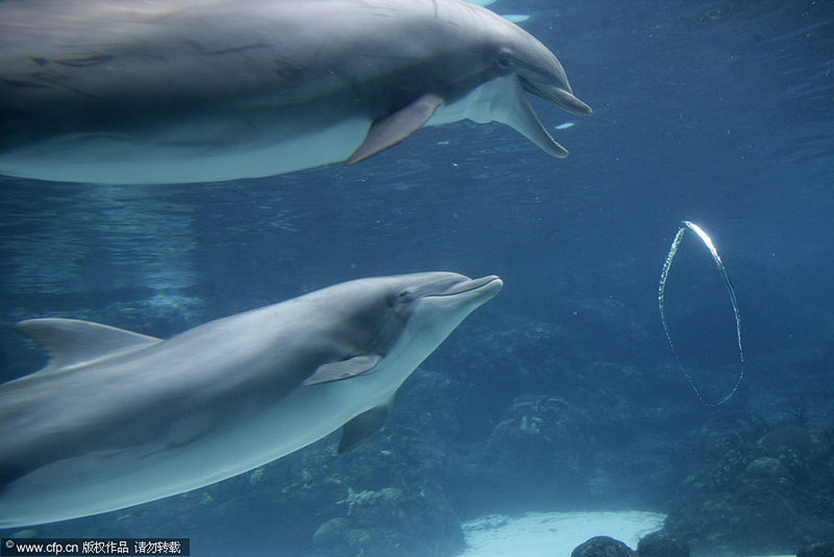 近日,美國奧蘭多海洋世界的一只寬吻海豚吹出“心形”氣泡,似乎要在情人節來臨前夕傳達濃濃愛意。圖片來源:CFP