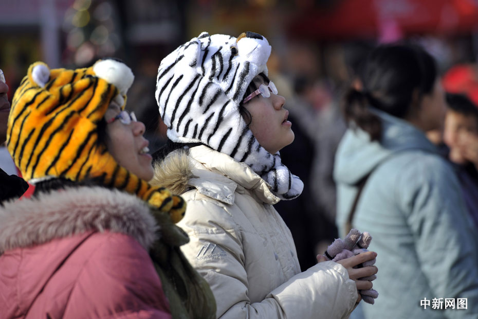 2月14日,農(nóng)歷正月初一,北京各大傳統(tǒng)廟會(huì)、洋廟會(huì)爭(zhēng)相開(kāi)幕,許多游客頭戴虎年飾品開(kāi)心游廟會(huì)。中新網(wǎng)記者 金碩 攝