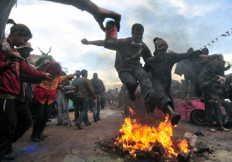 2月15日,希臘港口加拉西迪,狂歡者在街頭參加“面粉大戰(zhàn)”。“面粉大戰(zhàn)”是當(dāng)?shù)貞c祝狂歡季結(jié)束的一項(xiàng)傳統(tǒng)活動(dòng),隨后將是為期40天的齋戒月直至復(fù)活節(jié)。圖片來(lái)源:中國(guó)新聞網(wǎng)