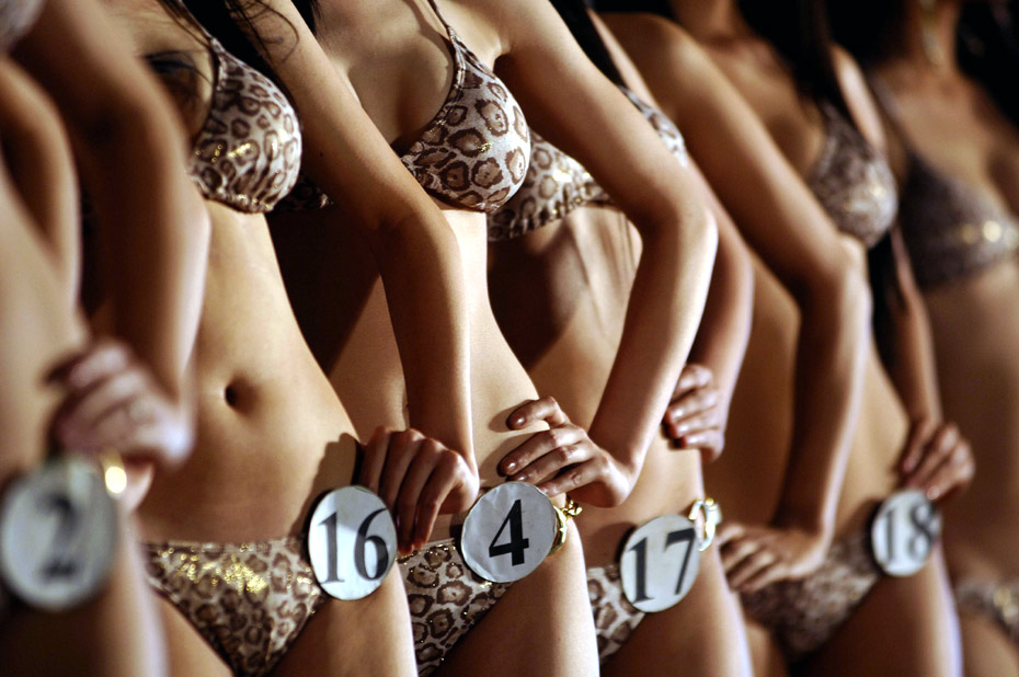 2月18日,在菲律賓首都馬尼拉,參加2010年菲律賓小姐競選的選手們在展示泳裝。當日,共有24名佳麗參加了這項比賽。圖片來源:中國新聞網