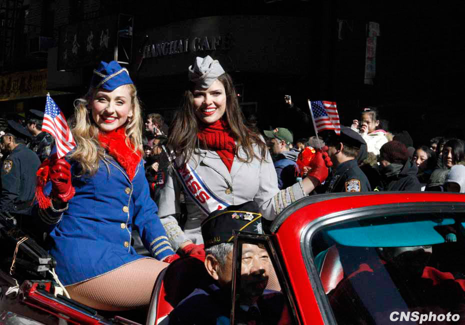 虎年紐約華埠慶祝農歷新年“重頭戲”花車大游行21日登場,吸引超過10萬人圍觀共同狂歡,成為歷年來參加人數最多的一次花車游行。12輛盛裝花車以及數千人的表演團隊沿著華埠最熱鬧的數十條街道一邊行進一邊表演,滿天彩帶飄揚,場面熱鬧非常。圖為表演團隊在行進中。中新社發 魏晞 攝