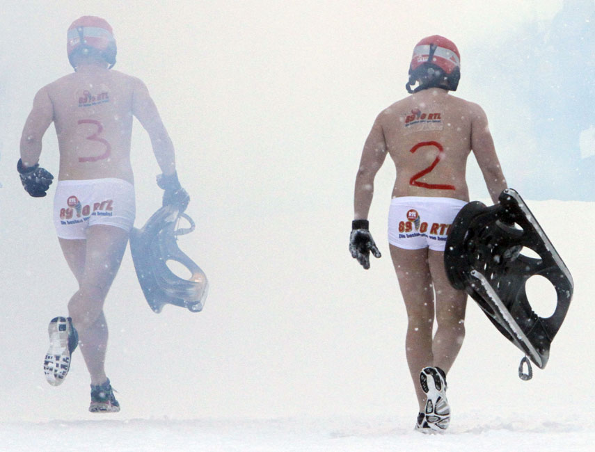 德國小鎮(zhèn)舉行雪天裸體滑行大賽
