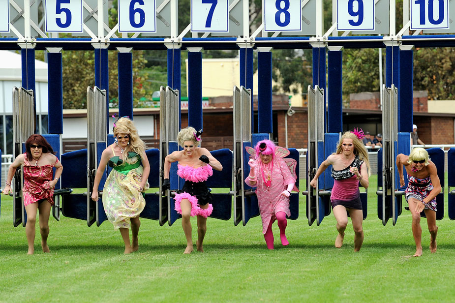 當地時間2月26日,澳大利亞悉尼,眾多同性戀們濃妝艷抹在皇家賽馬場舉行賽跑,迎接即將到來的悉尼同性戀大游行。