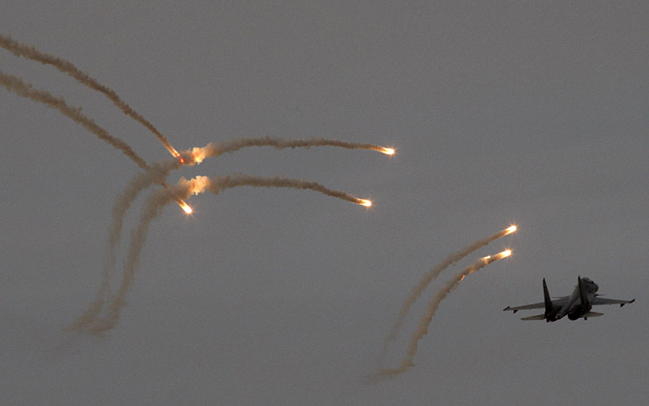 2月28日,印度空軍在該國西部地區舉行大規模空中火力展示演習,出動了包括“費爾康”空中預警機、蘇-30戰斗機、米格-29戰斗機、幻影-2000戰斗機、伊爾-76運輸機和米-35武裝直升機等約百架戰機。圖片來源:中國新聞網
