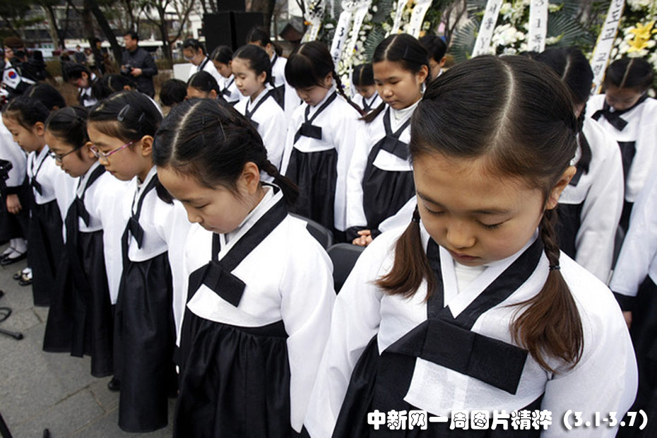 近日,韓國首爾的小學生身穿傳統服飾在三一運動紀念活動上默禱。三一運動紀念日是為了紀念1919年3月1日發生的反抗日本殖民統治的起義而設。圖片來源:中國新聞網