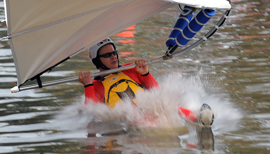 當地時間3月7日,澳大利亞墨爾本舉行一年一度的“鳥人”大賽上,參賽者帶著自己的無動力“翅膀”飛身躍向水面。圖片來源:中國新聞網