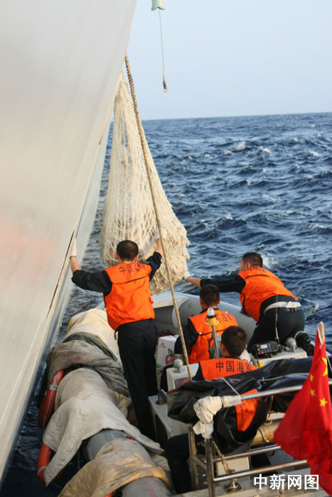 09年4月在西印度洋遭索馬里海盜挾持的臺(tái)灣遠(yuǎn)洋漁船“穩(wěn)發(fā)161號(hào)”,歷經(jīng)各方營救,終于在遭挾持10個(gè)多月后,包括船長顏勝男等共28人返回高雄港。圖片來源:中國新聞網(wǎng)