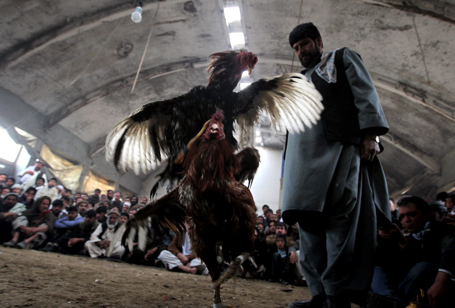 當(dāng)?shù)貢r(shí)間3月12日,在阿富汗首都喀布爾,觀眾們正在觀看傳統(tǒng)的斗雞比賽。圖片來源:中國新聞網(wǎng)