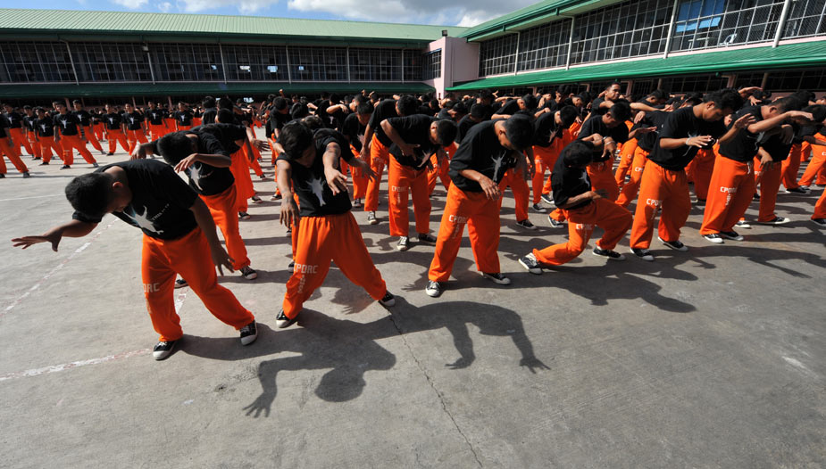 近日,在菲律賓超過(guò)1500名囚犯在監(jiān)獄中集體學(xué)習(xí)已故歌壇巨星杰克遜的舞蹈,以此來(lái)激起他們生活的斗志。圖片來(lái)源:中國(guó)新聞網(wǎng)