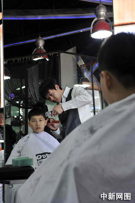 3月17日,北京,一個小朋友在一家美發(fā)店理發(fā)。中新網(wǎng)記者 金碩 攝