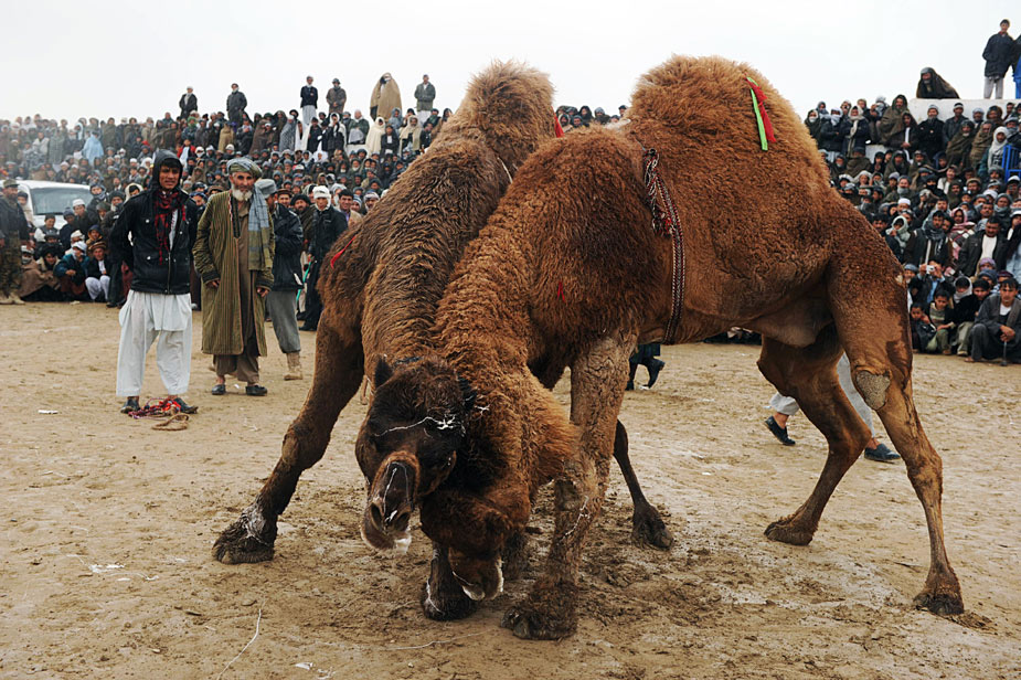 3月22日,阿富汗舉行傳統(tǒng)的都駱駝大賽慶祝阿富汗新年。斗駱駝在阿富汗是一項(xiàng)頗受民眾喜歡的運(yùn)動(dòng)。