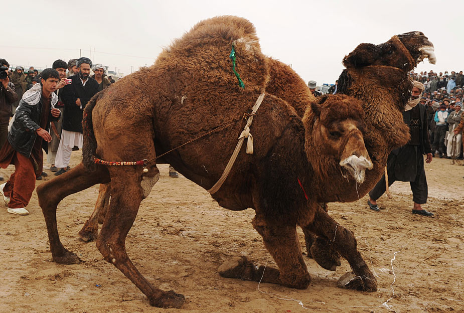 3月22日,阿富汗舉行傳統的都駱駝大賽慶祝阿富汗新年。斗駱駝在阿富汗是一項頗受民眾喜歡的運動。