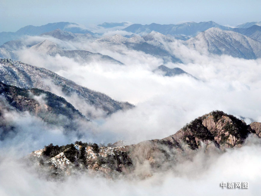 3月25日,春雨初霽,安徽黃山風景區(qū)綻放壯美云海,游眾置身忘懷“人間仙境”。 圖片來源:中國新聞網(wǎng)