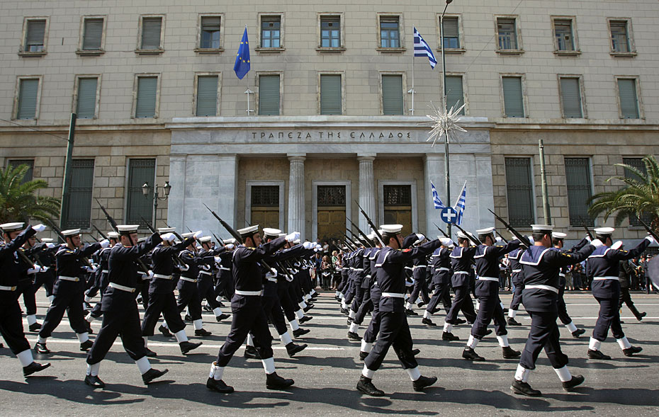3月25日,在希臘首都雅典的憲法廣場,人們參加獨立戰爭紀念日慶;顒印D片來源:中國新聞網
